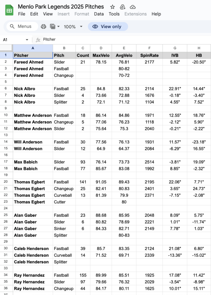 Menlo Park Legends – Baseball Analytics Intern